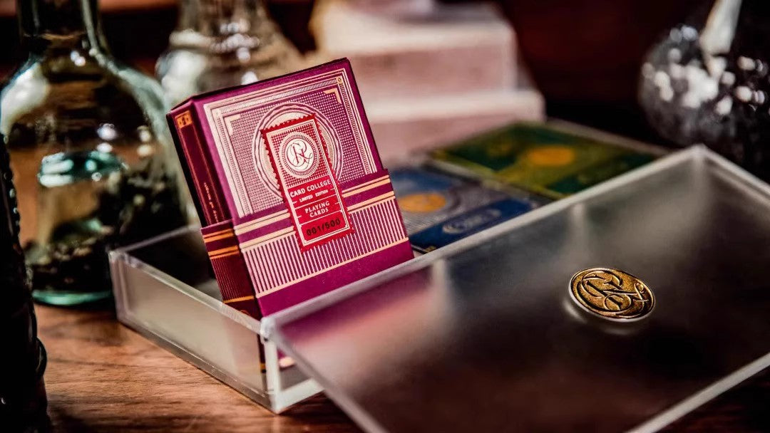 Three decks: wine red, Indigo, and deep green