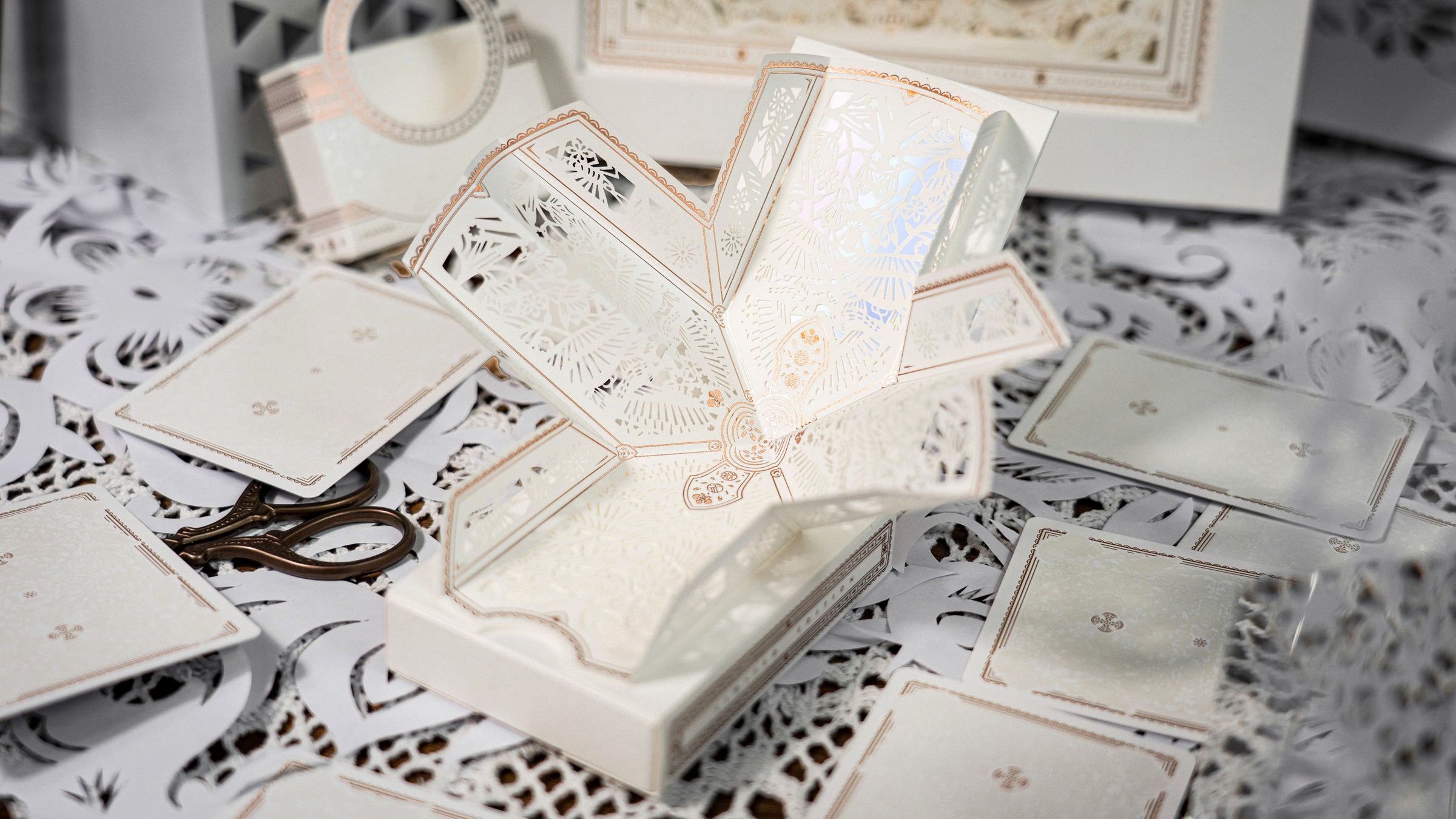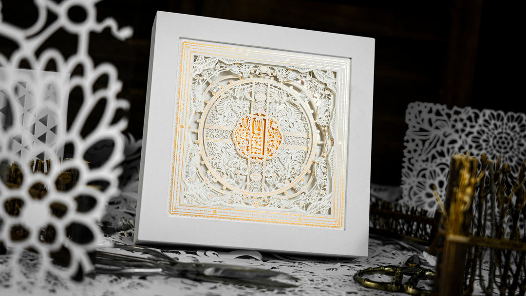 The paper carving is combined with a cross double-folding structure and a double-layered card box to bring seven layers of carving to the card box.